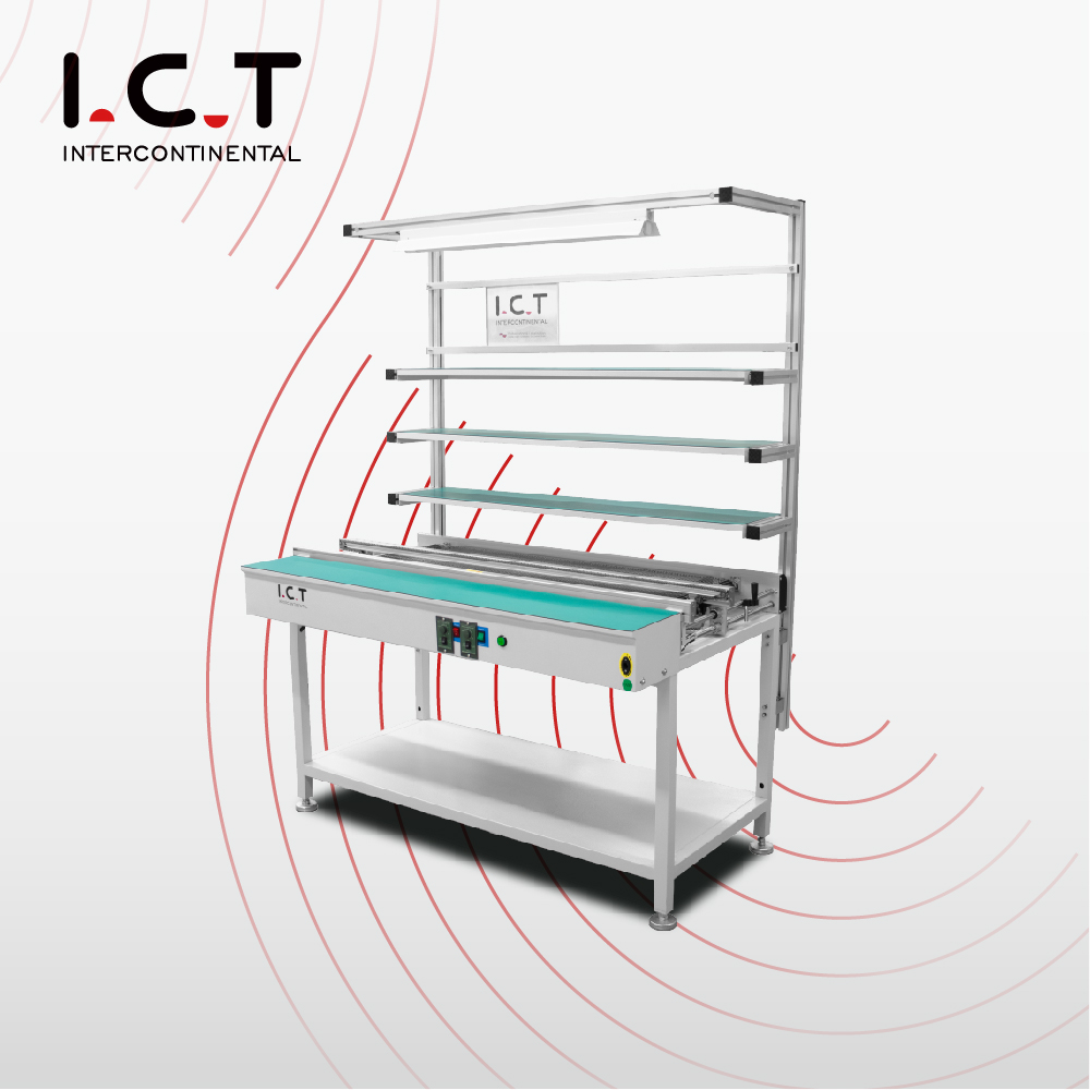 I.C.T offre più di dieci tipi di trasportatori in modo che ogni fabbrica funzioni perfettamente. I trasportatori di collegamento standard trasferiscono semplicemente le schede. Le stazioni di ispezione aggiungono luci intense. Le unità telescopiche e di scarto si adattano a layout speciali. L'avanzato SMT PCB Sealing Trasportatore SMT è dotato di copertura manuale, copertura a sollevamento automatico, versione a singola o doppia corsia, oltre a doccia d'aria o ionizzatore opzionale per ambienti ultra puliti. Sono disponibili anche modelli con catena e buffer per carichi pesanti. Ogni linea di assemblaggio di circuiti stampati Trasportatore SMT può essere completamente personalizzata in lunghezza, altezza, tipo di copertura e funzioni intelligenti per soddisfare i tuoi precisi requisiti di pulizia.